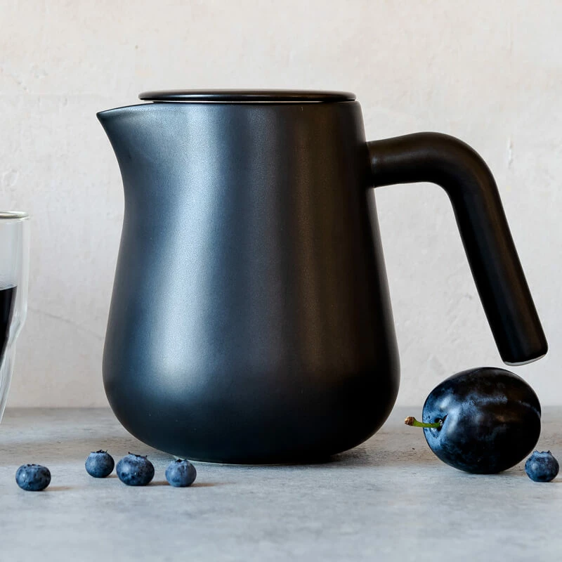 Im zeitlosen Mattschwarz macht sich die Arca X-Tract Brew perfekt auf jeder Kaffeetafel! Sie ist eine langlebige Brühmethode von Carl Henkel, welche umweltfreundlich sowie nachhaltig ist! Gefertigt wird die Arca X-Tract aus hochwertigem Porzellan. Dabei wird sie mit einer besonderen Technik – der sogenannten Reactive Gkaze – glasiert. So wurde die Kanne sowie der Deckel gebrannt und eine individuelle Farbveränderung findet statt. Jede Arca X-Tract Brew ist also ein absolutes Unikat! Das Design ist zeitlos, gradlinig und modern.
