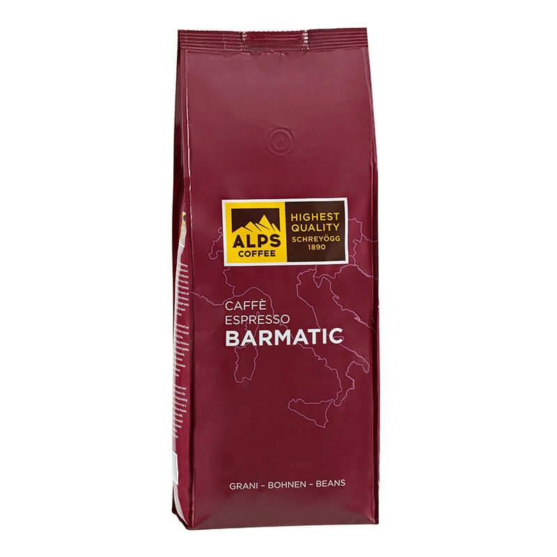 Der Espresso Barmatic von Alps Coffee ist eine Mischung aus 90 % Arabica Bohnen und 10 % Robusta Bohnen. Die Bohnen stammen aus Zentralamerika, Südamerika, Ostasien und Südostasien. Geschmacklich ist der Barmatic feinwürzig und hat wenig Säure.