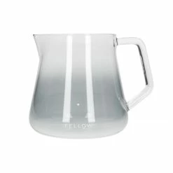 Die „Mighty Small“ Glaskaraffe von Fellow besteht aus mundgeblasenem Borosilikatglas. Das Material ist nur 2 mm dick und trotzdem sehr widerstandsfähig. Zusätzlich verfügt das Borosilikatglas über eine gute Warmhaltefähigkeit. Auf der Karaffe ist ein kleiner Punkt zu sehen, welcher die Füllhöhe für 300 ml Kaffee markiert. Das maximale Füllvolumen wird von Fellow mit 500 ml angegeben. Das Leergewicht der Karaffe beträgt 250 g.